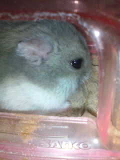 穴掘り中。野生のハムスターは乾燥地で穴をほってくらすので、穴掘りはよくする動作。ここには掘り進むほどの深さはないけど(笑)