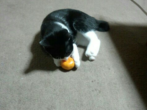 みかんで遊ぶ5号(^x^)