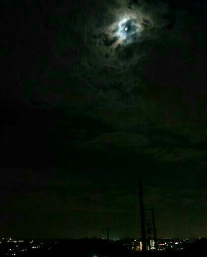 月と雲がきれいだなあと思って撮ったのに、なんかホラーっぽい写りに…。