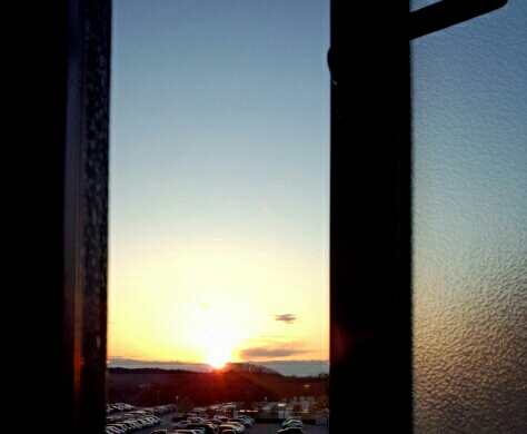 会社のトイレからちょうどいい具合に夕日が見える。