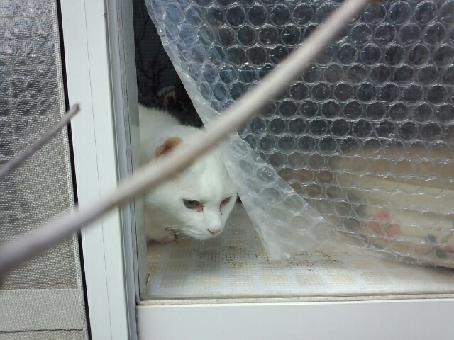 外ぬこ1号を観察中のぬこ2号(^x^)