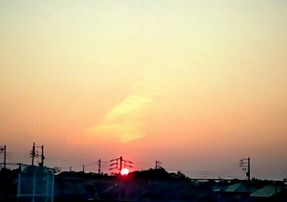 夕日が魔女のとんがり帽子かぶってるみたいだなーと思って撮ったら、そういう微妙な色合いは写らなかったという残念なアレ。