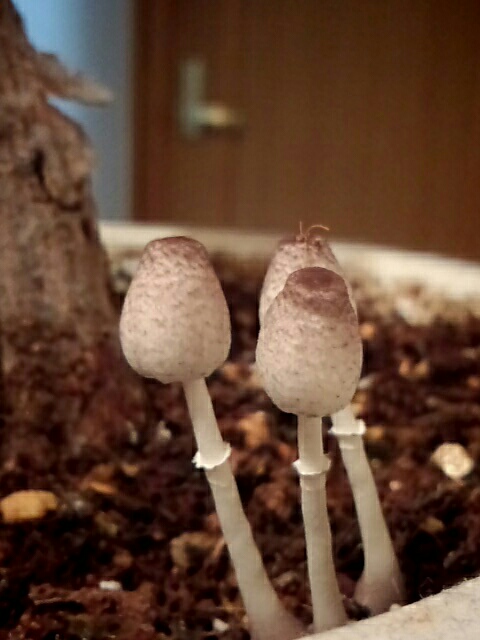 廊下に置いてある観葉植物の土からキノコがニョッキリw