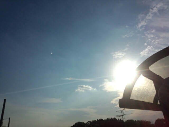 真ん中あたり、横に細長い雲の左半分が実は彩雲。