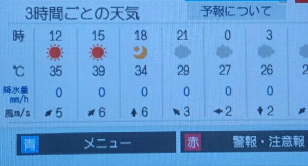 予報の時点で39℃ときたか。