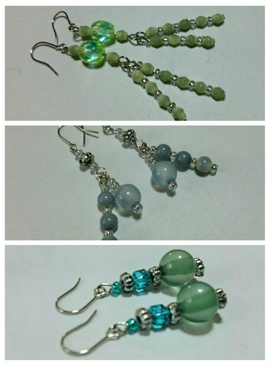 ので、ビーズの三連首飾りをバラしてピアスにしてみた。