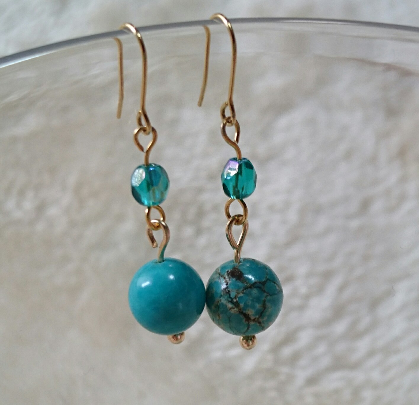 ダンナがトルコ石をくれたので、ピアスにしてみた。