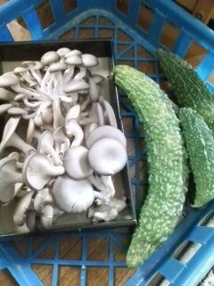 今日はばあちゃんのお見舞いに行ってから、米とゴーヤとしめじをもらってきた。