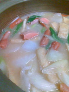 みそクリームシチュー(鮭、ウインナー、油揚げ、ネギ、大根)