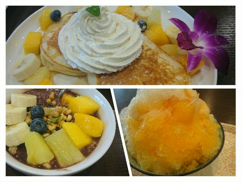 ハワイアンパンケーキ、アサイーボウル、マンゴーかき氷、フレンチトースト。