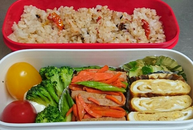 (玉子焼き+キャベツ、ツナマヨ+ニンジン)