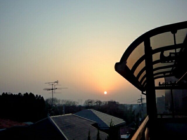 春分の夕日。
