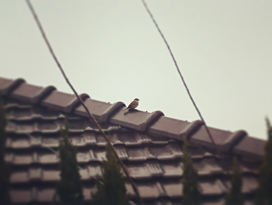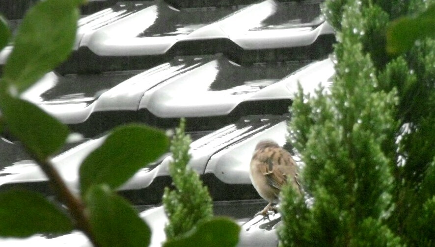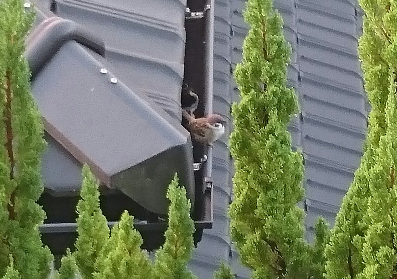 屋根の上で待っていたのが、だんだん屋根の下のはしっこに移動してくる。