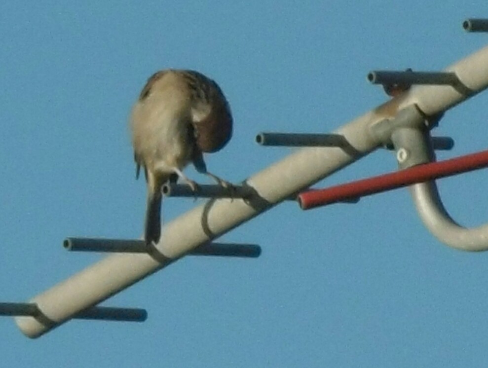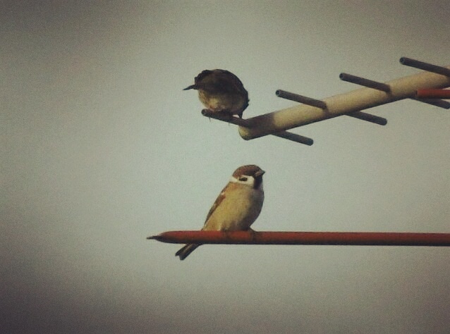 朝晩起きてベランダに出ると、すでに準備万端のスズメが待っているw