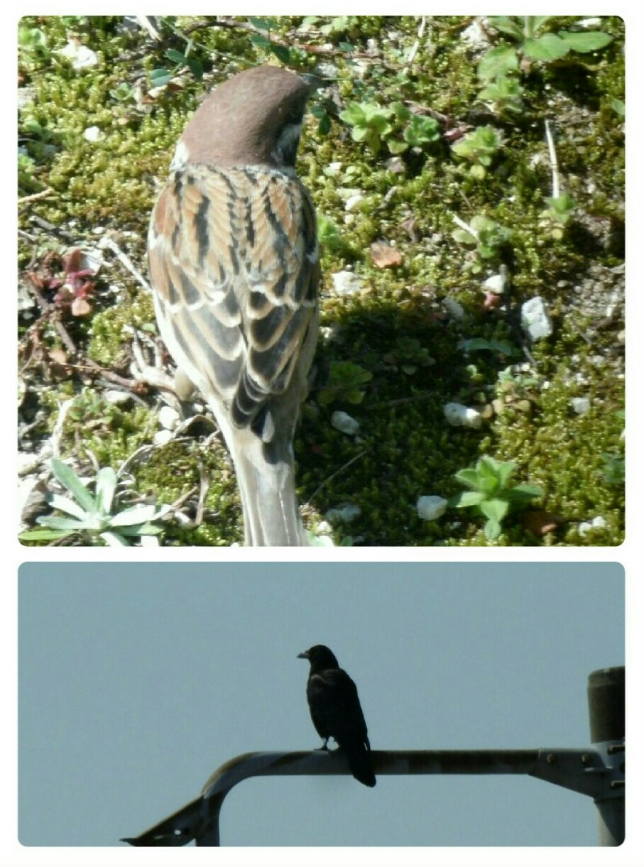 すずめとハシボソガラス。