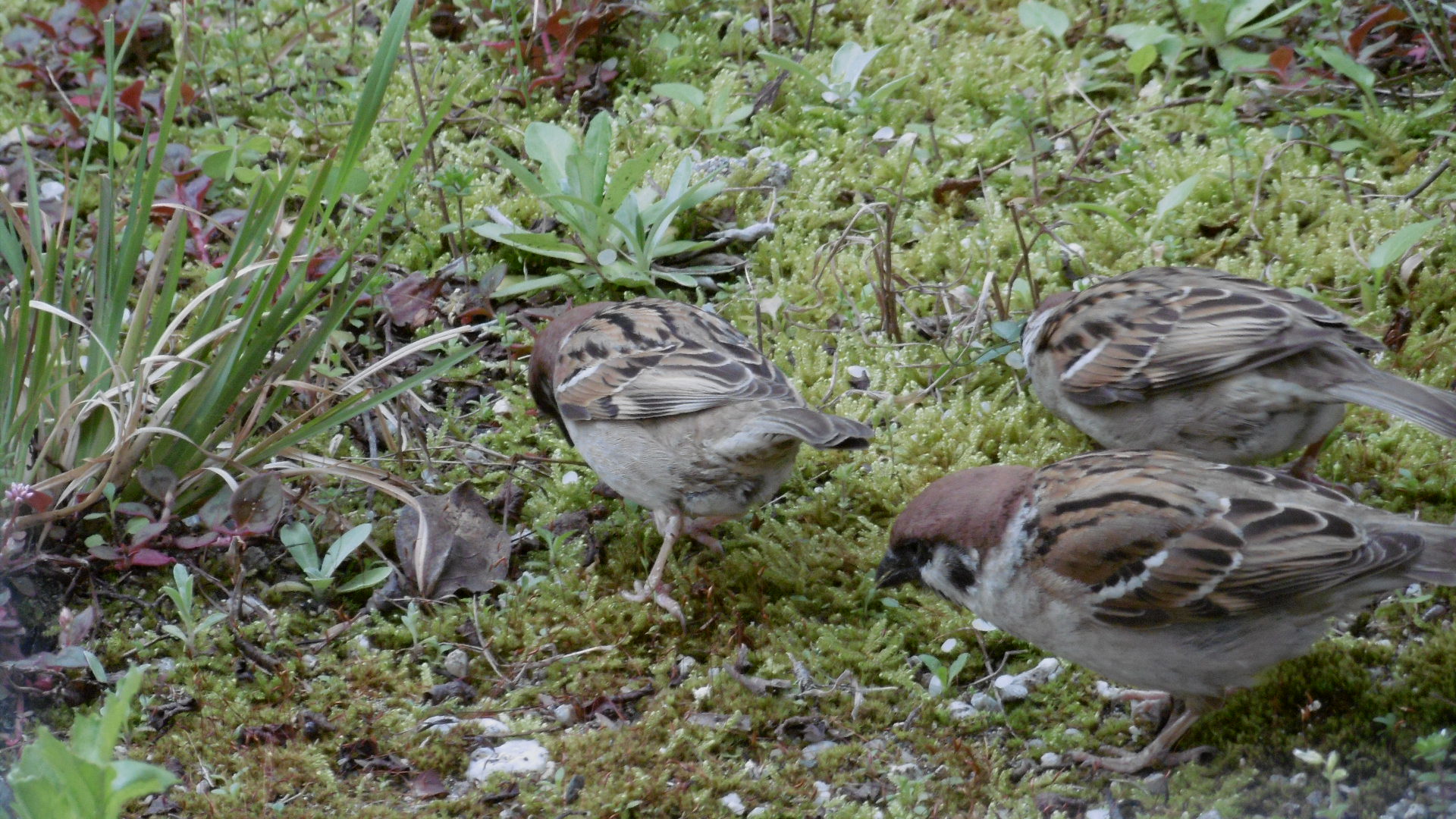 庭にまかれるクズ米を待っている雀(・∀・)