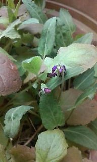 うちの玄関先に放置プレーになっている植木鉢に、どこからかスミレの種が飛んできて芽を出したもよう。スミレ以外に雑草もてんこ盛りだけど・・・。