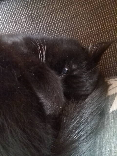 アクロバティックに丸まって半目で寝ていたw