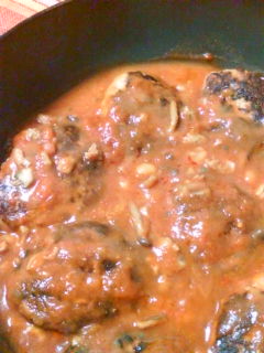・煮込みハンバーグ(ハンバーグ、しめじ、大豆、トマトソース)