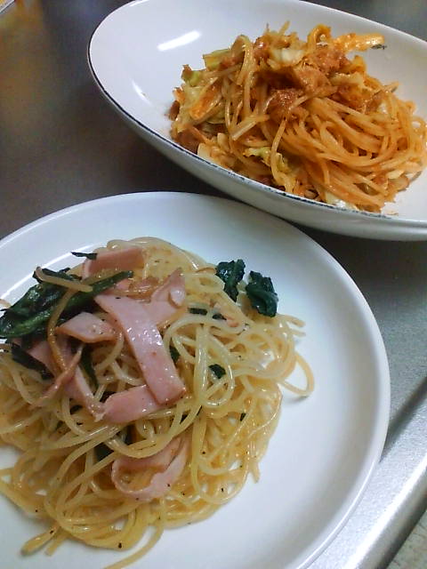 ・ハムとほうれん草のペッパーマヨスパゲティ