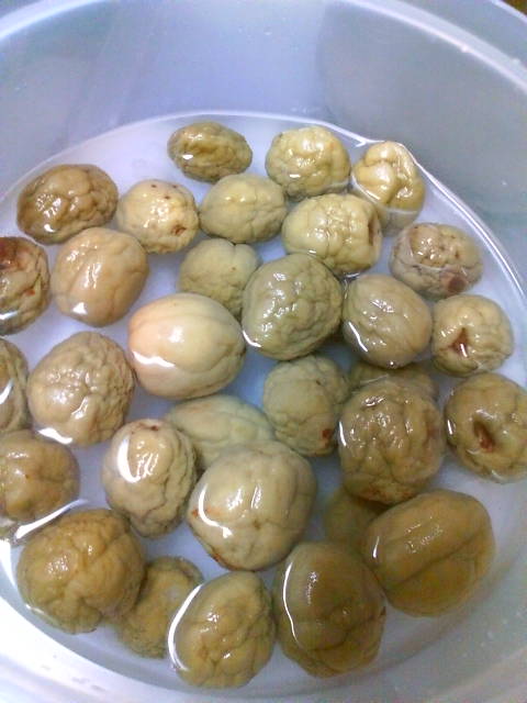 エキスがジョワーっとしみだして梅がしわしわ~。