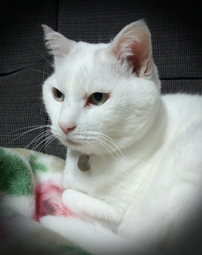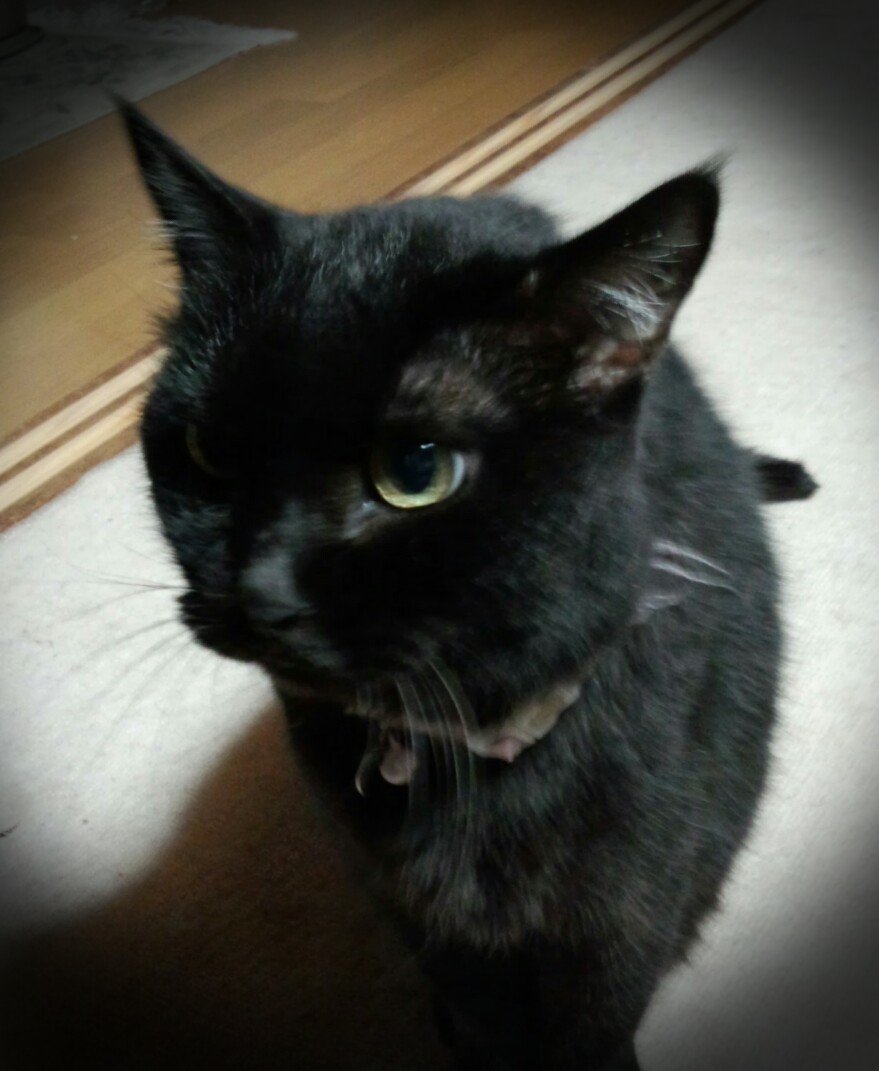 一時帰宅した母がソファに寝転がって毛布をかけた。 ら、その足元で早速まったりする2号^^ 1号は私の後をついて回って「なでれー」と催促^^ 2号のあくびー(^ω^)