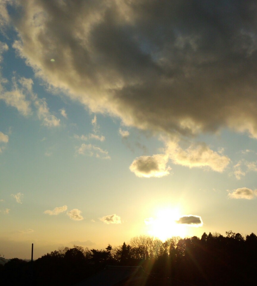 雑木林の枝のスキマから夕日がすけて切り絵みたい。