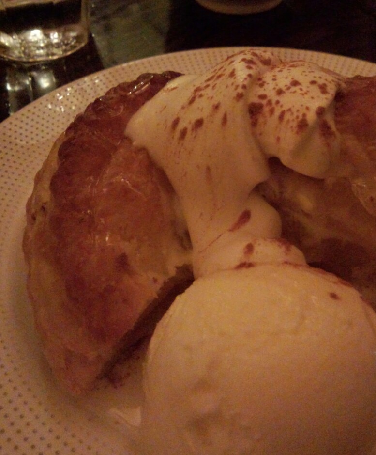焼きたてアップルパイの上に100円プラスでバニラアイスをトッピングできる。