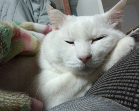 2号がソファでくつろいでいたので毛布をかけてやったらこの顔w