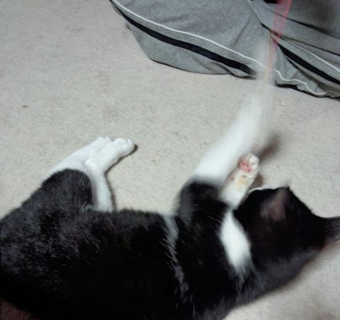 弟がネコじゃらしで遊んでいるところ。