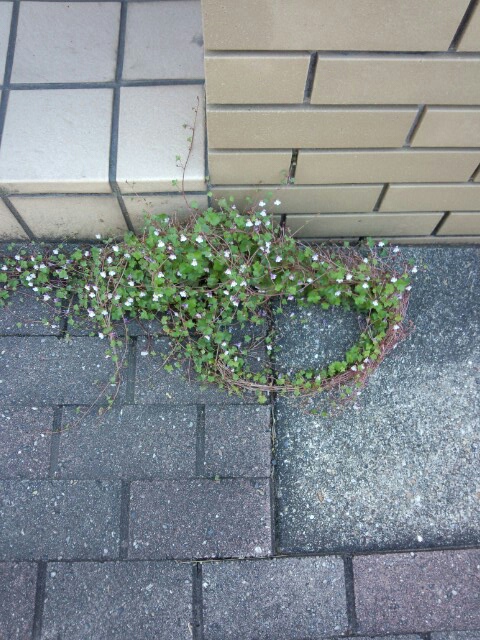 石の隙間からのびた蔦葉雲蘭(つたばうんらん)がくるりん。