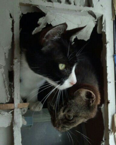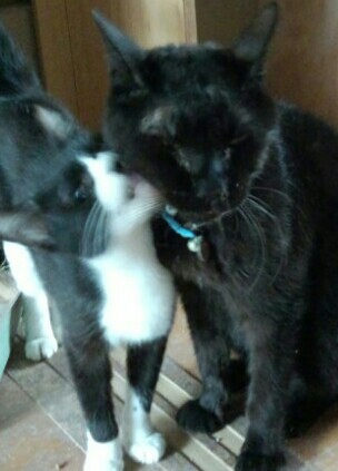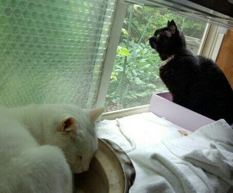 やっぱり寂しいのか、仲の悪い2匹がこんなに近くでくつろいでる(^x^)