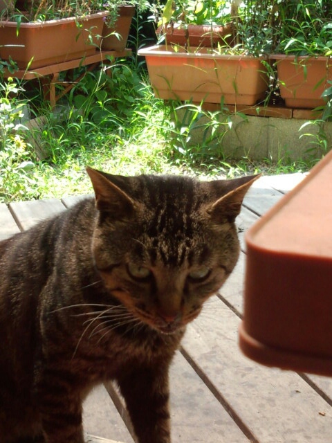 ゴハン待ちの外ぬこ2号(^x^)