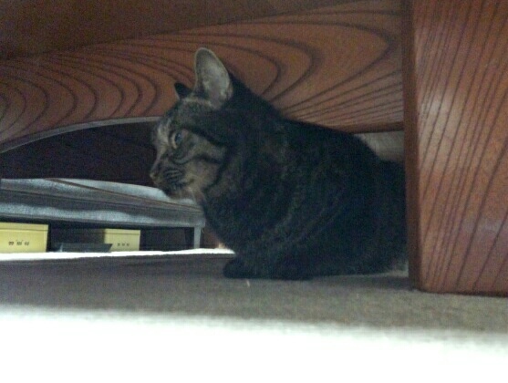 ので、テーブルの下で小さくなる。