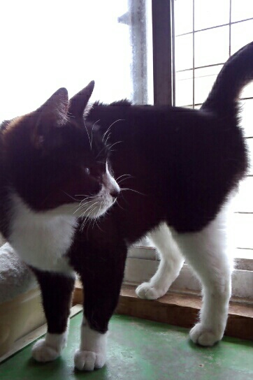 いつもは毛を逆立てて怒る9号は、なにやらとても静か。