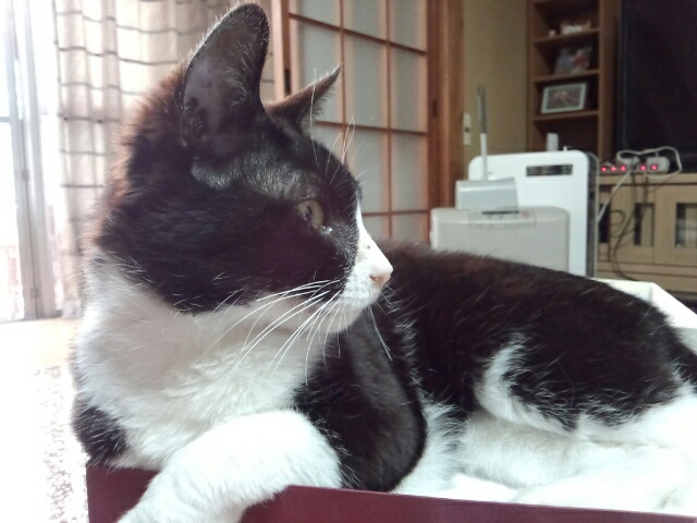 ぬこ5号はお菓子の箱にすぽっとはまってご満悦(^x^)