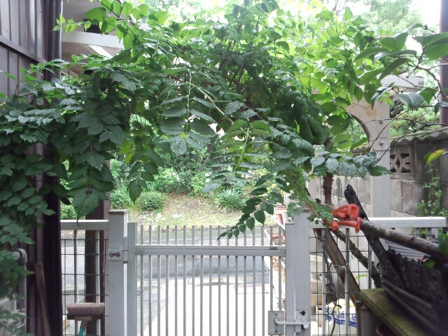 伸びすぎて大変なことになっとったのを、うちのダンナがぐるーっと曲げてアーチに。がんばった。