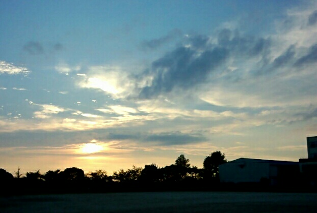 実家前の小学校から夕日をパチリ。