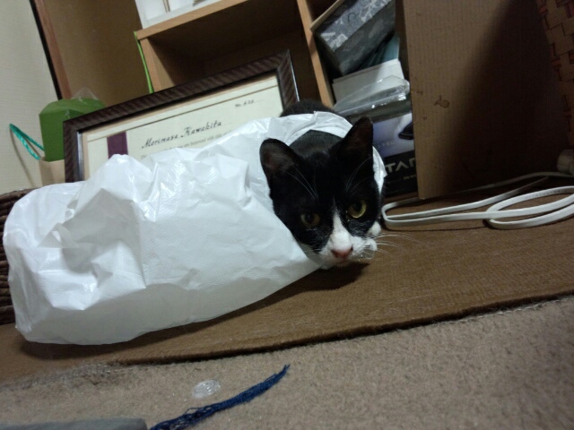 5号はスーパーの袋が大好き。