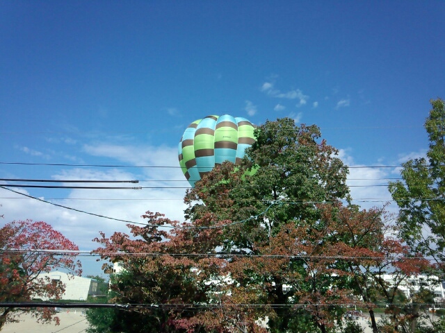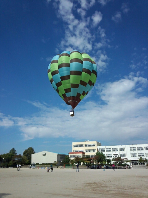 実家にきたら目の前の小学校の校庭から気球があがっとるー。