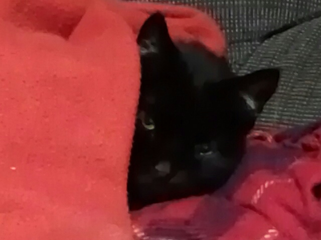 フリースの膝掛けをかけられて迷惑そうな1号(^x^)