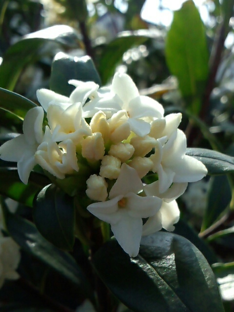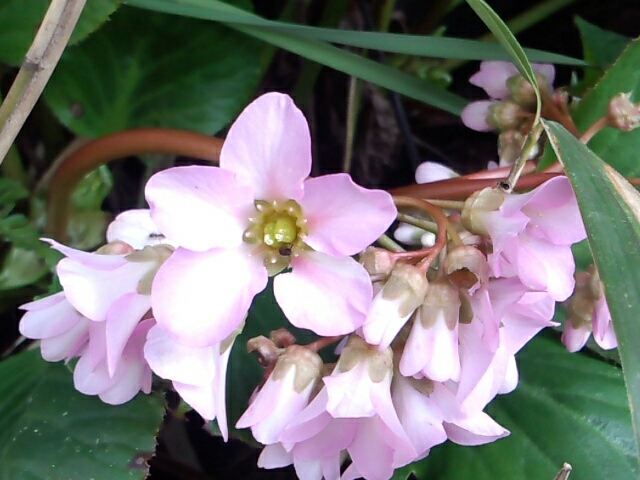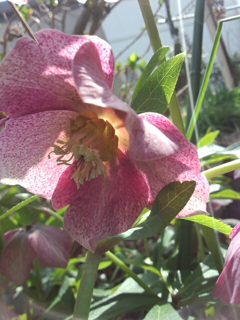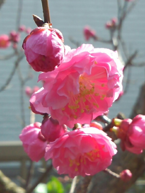 ここ1週間の暖かさで実家の庭が急に春めいた色になってきた。