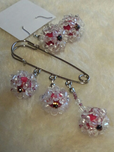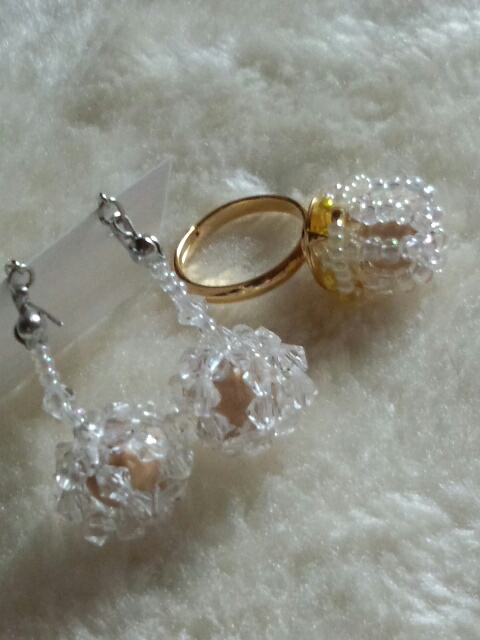 ビーズをボール状にしてピアスと指輪。
