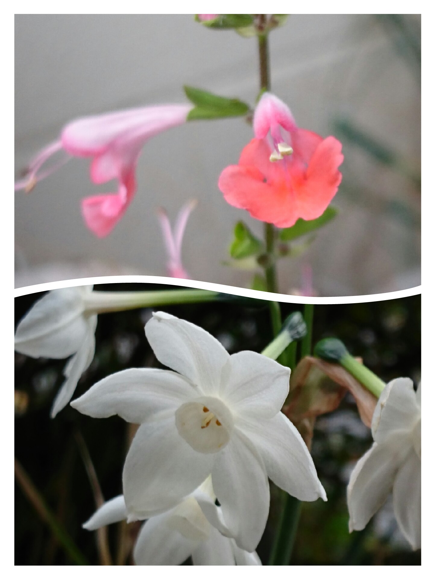 ペーパーホワイトの中心のとこ、困り顔っぽい(笑)