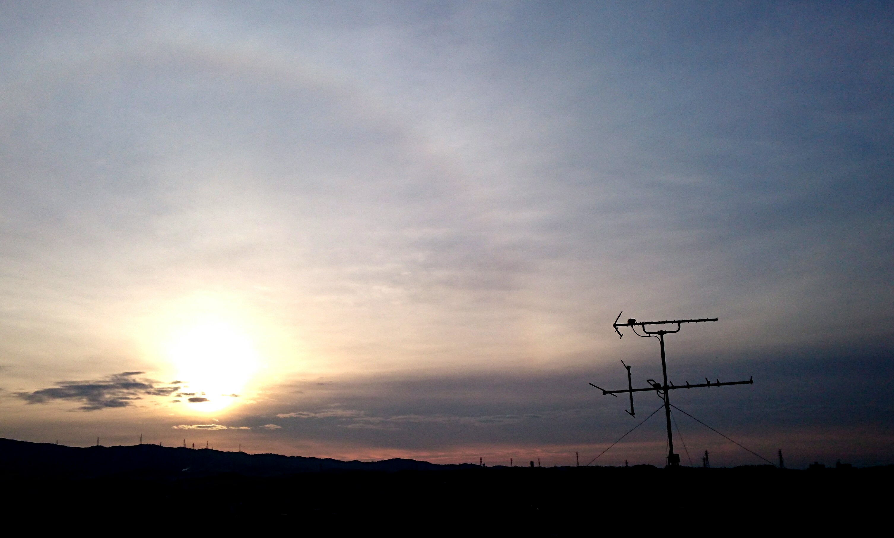 朝日に虹色のかさがかかっとる(о´∀`о)