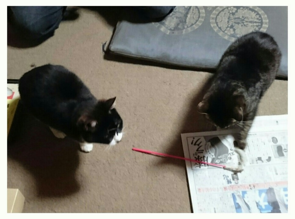 ダンナんとこに駆け寄ってネコじゃらしを見つめて、遊んでアピール(笑)