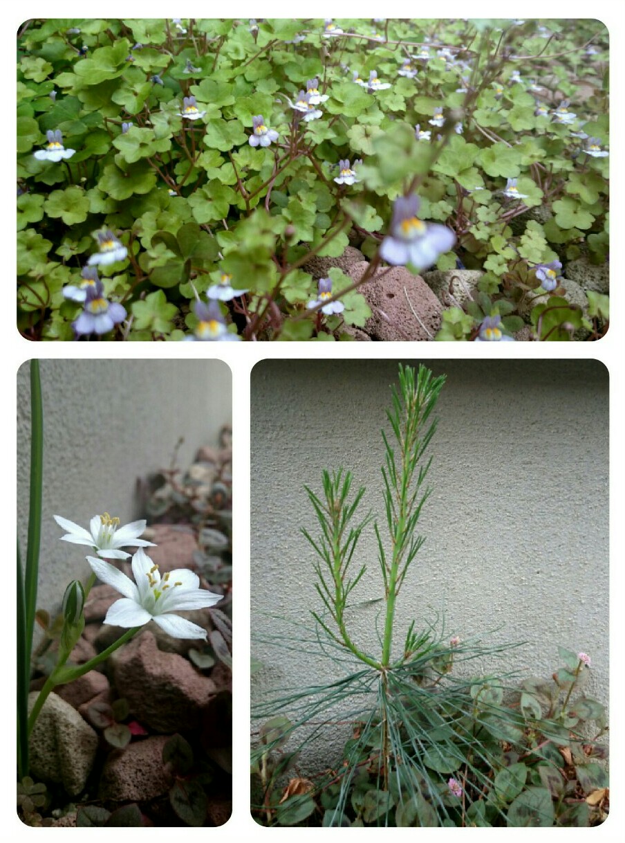 左上から海老根蘭、ビオラ、すずらん、立浪草、カタバミ、オーニソガラム。