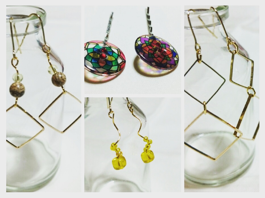 週末のイベント用にピアスとヘアピンを作った。