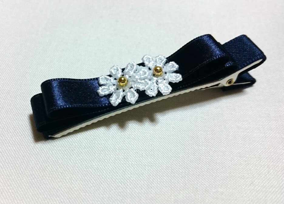 仕事中にもつけられるように紺色のリボンでという指定。