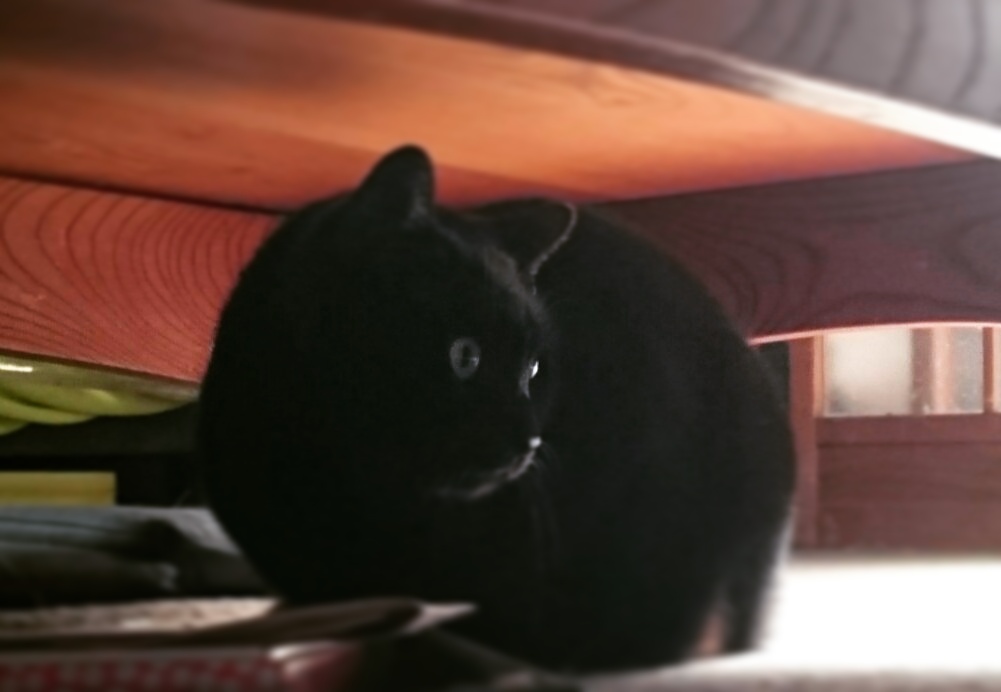 久しぶりだとすぐ逃げちゃうけど、今日は辛うじてテーブル下に隠れるだけで済んだ。